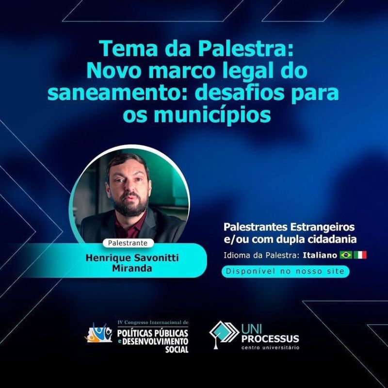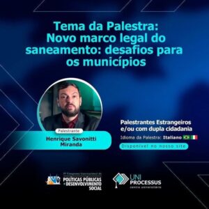 (72) 26.10.2022 – Palestra no IV Congresso Internacional de Políticas Públicas e Desenvolvimento Social sobre o Novo Marco Legal do Saneamento Básico
